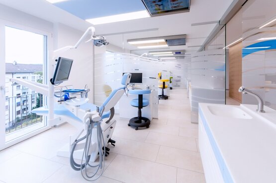 Ästhetisches Design trifft auf überlegene Funktionalität: Die moderne Neukonzeption der gesamten Räumlichkeiten führt die verschiedenen Behandlungsräume, Empfangsbereich, Warten und Büros auf eine überzeugende Art und Weise zusammen.