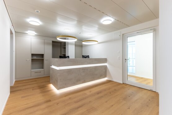 Bei der Planung einer Praxis in der Urololgie und Vizeralchirugie ist es wichtig, eine angenehme und funktionale Umgebung zu schaffen. In den Wartebereichen im Zentrum der Praxis stehen bequeme Wilkhahn-Sessel, auf denen die Patienten Platz nehmen können. Es gibt auch Regal, auf denen Zeitschriften oder Bücher liegen, um die Wartezeit angenehm zu gestalten. Die Beleuchtung ist mit 4000K optimal gelöst um eine entspannte Stimmung zu erzeugen. Zwischen den Behandlungszimmern der Urologie wurden direkt zusätzliche kleine Toiletten eingebaut was für und Innenarchitekten eine zusätzliche Herausforderung für die Leitungsführung bedeutete. Mit hervorragenden Unternehmer vor Ort ist uns das unmögliche Gelungen.