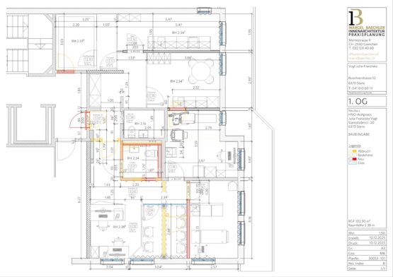 Dank unseres eingespielten Netzwerks gelang dennoch der Spagat zwischen "fliegender" Planung und Baubeginn. Das Bauamt Stans begleitete das Projekt von Beginn an konstruktiv, wodurch das Baugesuch bewusst schlank gehalten werden konnte. Mit dem Vertrauen aller Beteiligten und einer Auftraggeberin, die das mutige Farbkonzept von Anfang an mitgetragen hat, konnte der Umbau eines ehemaligen Büros – inklusive der Anpassung einer tragenden Wand – innerhalb von sieben Wochen erfolgreich realisiert werden.