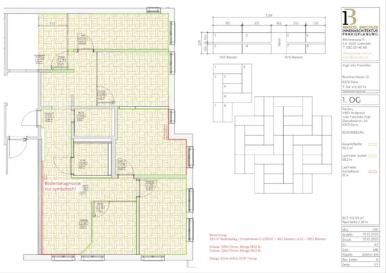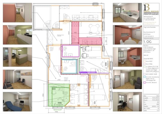 Eine der grössten Herausforderungen dieses Projekts war der Zeitrahmen. Die Auftraggeberin musste die bestehende Praxis bis vor Weihnachten 2025 verlassen. Geeignete Räumlichkeiten in dieser kurzen Zeit zu finden, erwies sich als anspruchsvoll. Ab dem Frühling 2025 wurden zahlreiche Objekte besichtigt, viele davon jedoch zu klein oder zu gross. Anschliessend bei verschiedenen Objekten Massaufnahmen, Layoutplanungen und Kostenschätzungen. Als schliesslich passende Räume gefunden waren, war der Zeitplan bereits stark fortgeschritten, sodass der Planungsstart erst im September 2025 erfolgen konnte. Dies war auch für die beteiligten Unternehmer äusserst sportlich, da diese zu diesem Zeitpunkt vielfach bereits bis Jahresende ausgebucht waren.